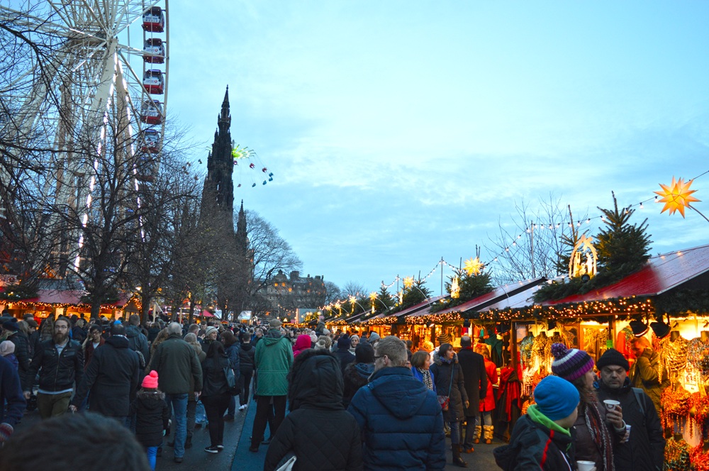 The traditional market stalls offer local and Scottish hand‑crafted gifts, festive fare, and seasonal treats like mulled wine, bratwurst, and indulgent chocolate‑dipped strawberries.